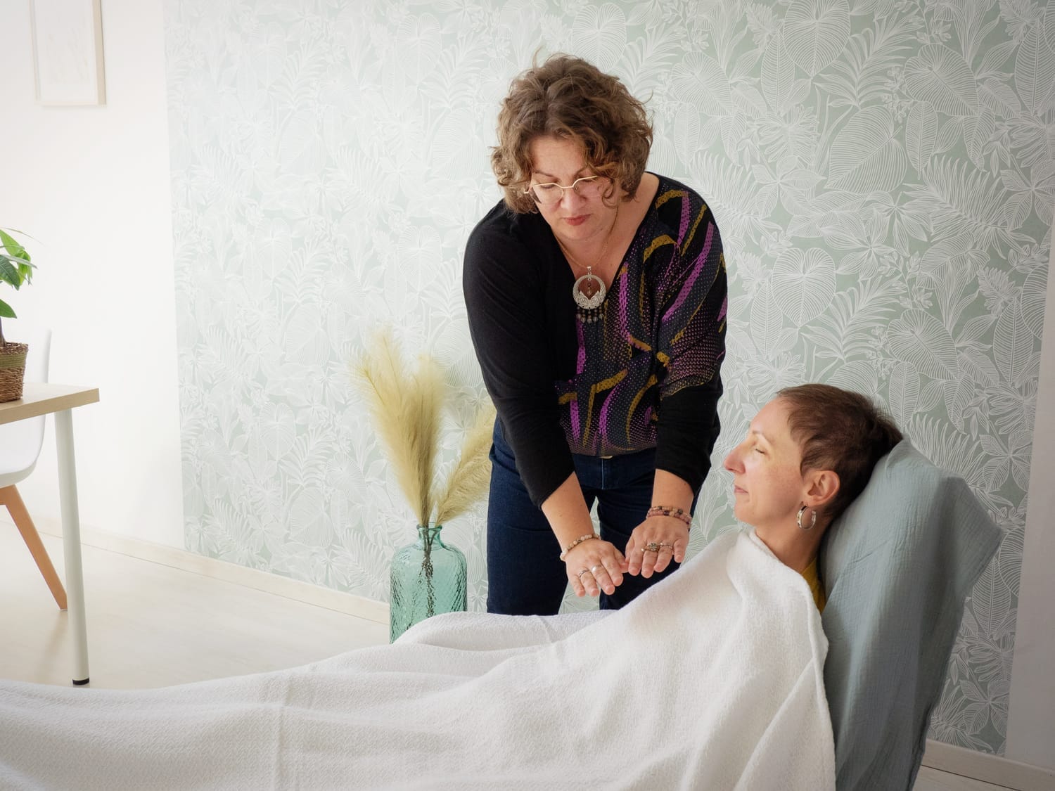 En début de séance je ne pose jamais de questions en début de séance, une harmonisation est intuitive. Ensuite, tu t'installes confortablement. Je travaille en silence et en douceur sur ton champ énergétique pour le nettoyer et l'harmoniser. Tu peux ressentir de la chaleur, une grande détente ou même t'assoupir. Nous terminons par un débriefing.
